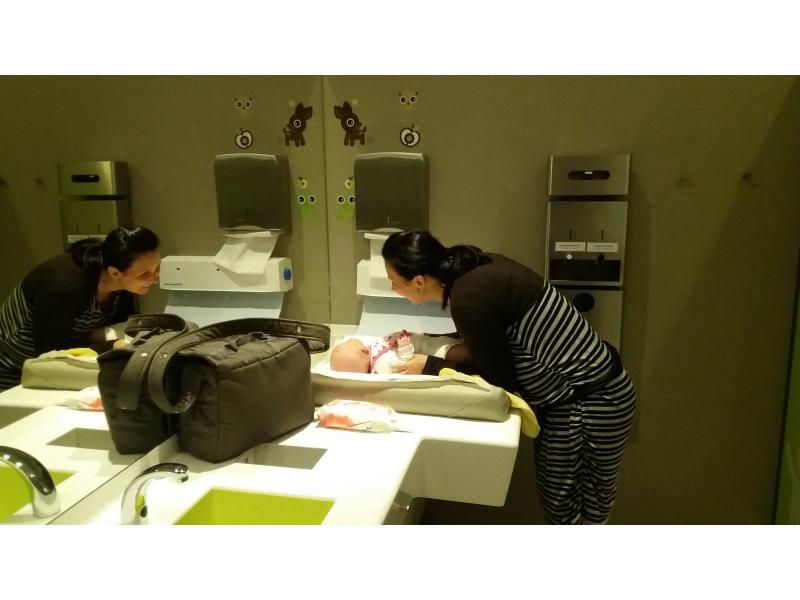 Ráda bych zde zmínila příjemnou zkušenost z nákupního centra Černý Most, kde jsme objevili samostatnou místnost pro maminky s dětmi se zastrčeným koutkem pro kojení, dětským záchod a mikrovlnkou. Hned se lépe cestuje, když víte, že druzí myslí na maminky s dětmi.