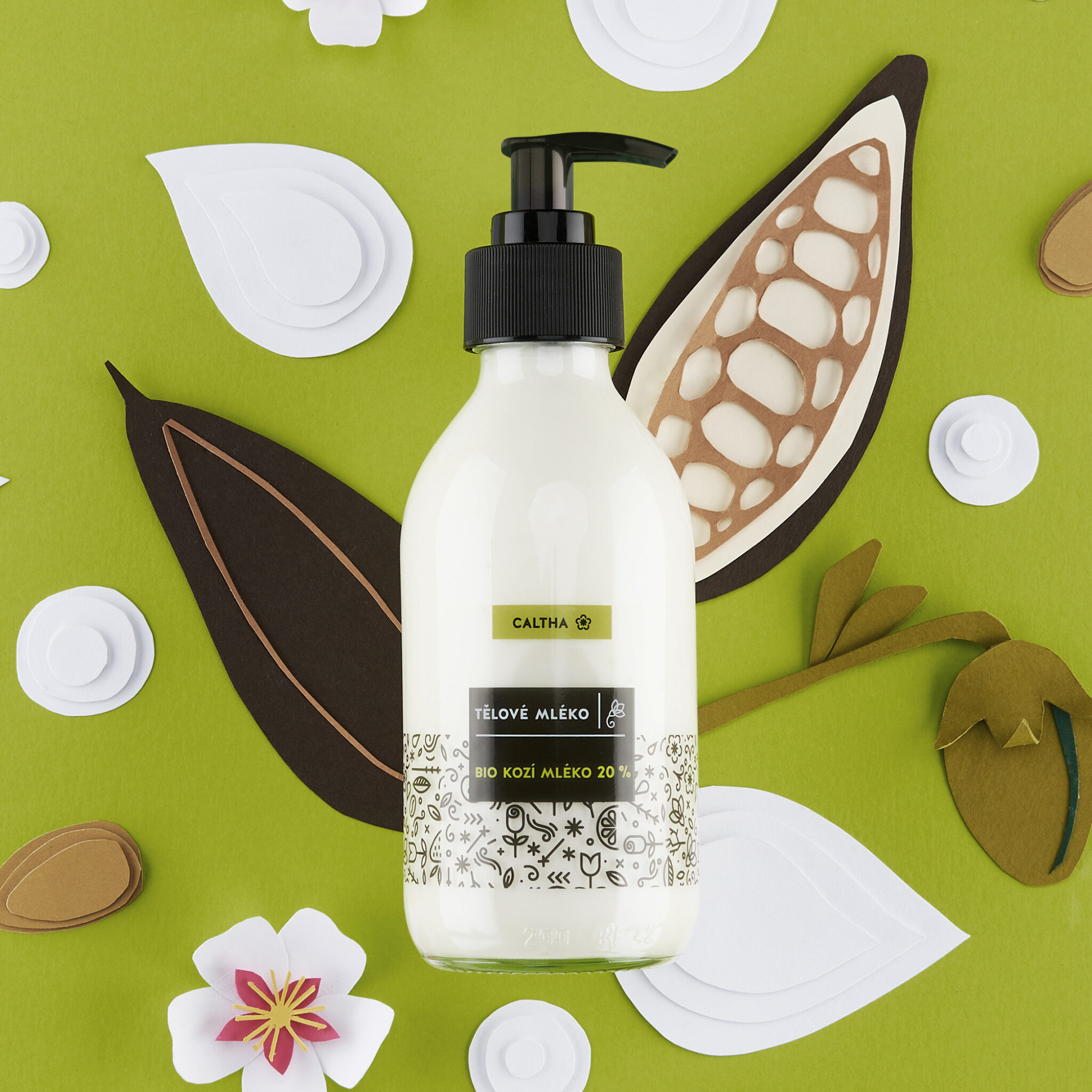 V našem sortimentu přibyla těsně před Vánoci dlouho očekávaná a vyvíjená novinka – kozí tělové mléko Caltha. Za jeho unikátní recepturou a výjimečnou kvalitou stojí čtyřnohé kozí dámy z farmy Tomšíčkovi nedaleko Slušovic. Ty totiž poskytují pro jeho výrobu klíčovou ingredienci – čerstvé kozí mléko.