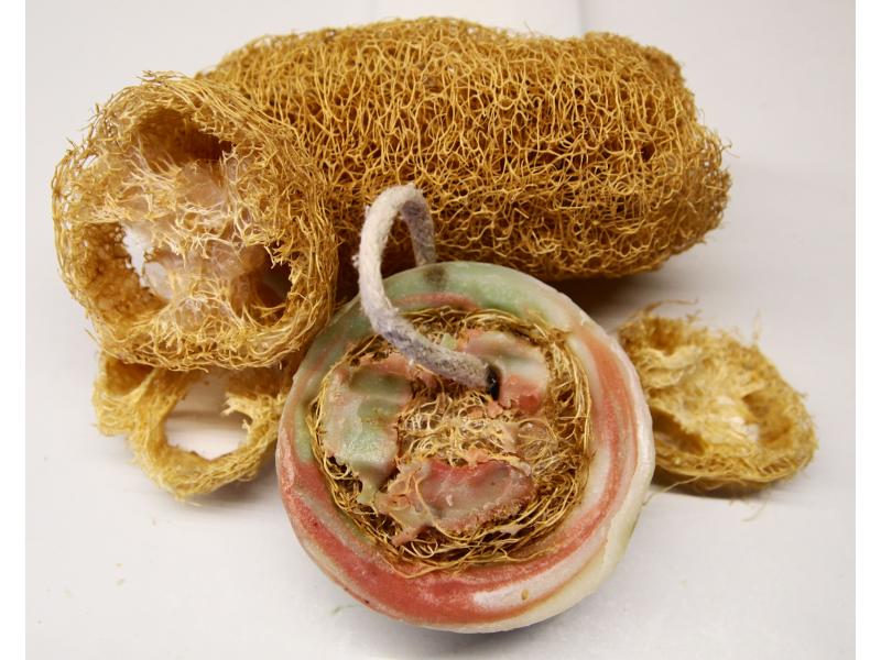 Lufu často používáme jako masážní žínku pro odstranění svrchní suché vrstvy kůže. Jednoduše nakoupíme v drogerii synteticky vyrobenou žínku "alla" lufa a dřeme své tělo z kůže. Lufu si však můžete pořídit z přírodních zdrojů, neboť lufa je pevné pletivo zralého plodu zeleniny podobné okurce s názvem LUFA. Rostlinu je možné vypěstovat i v místních teplotních podmínkách. To za zkoušku stojí, ne? Já jsem experimentovala s lufou tak, že jsem ji ponořila do čerstvě uvařeného mýdla a nechala společně s mýdlovou hmotou zatuhnout. Výsledek vidíte sami :)
