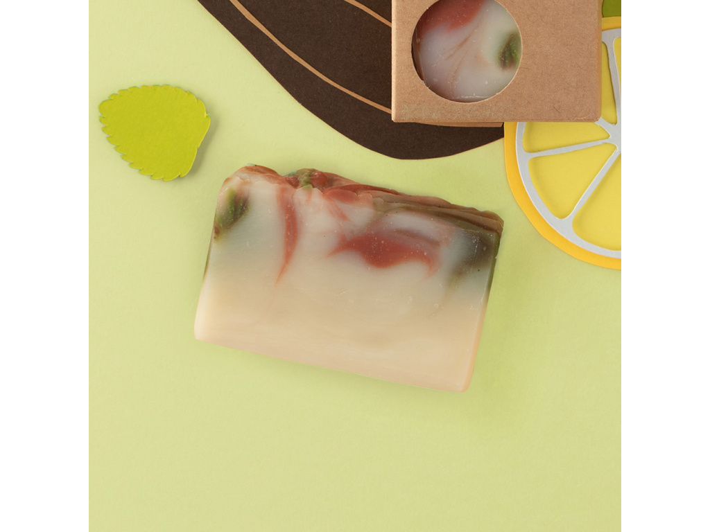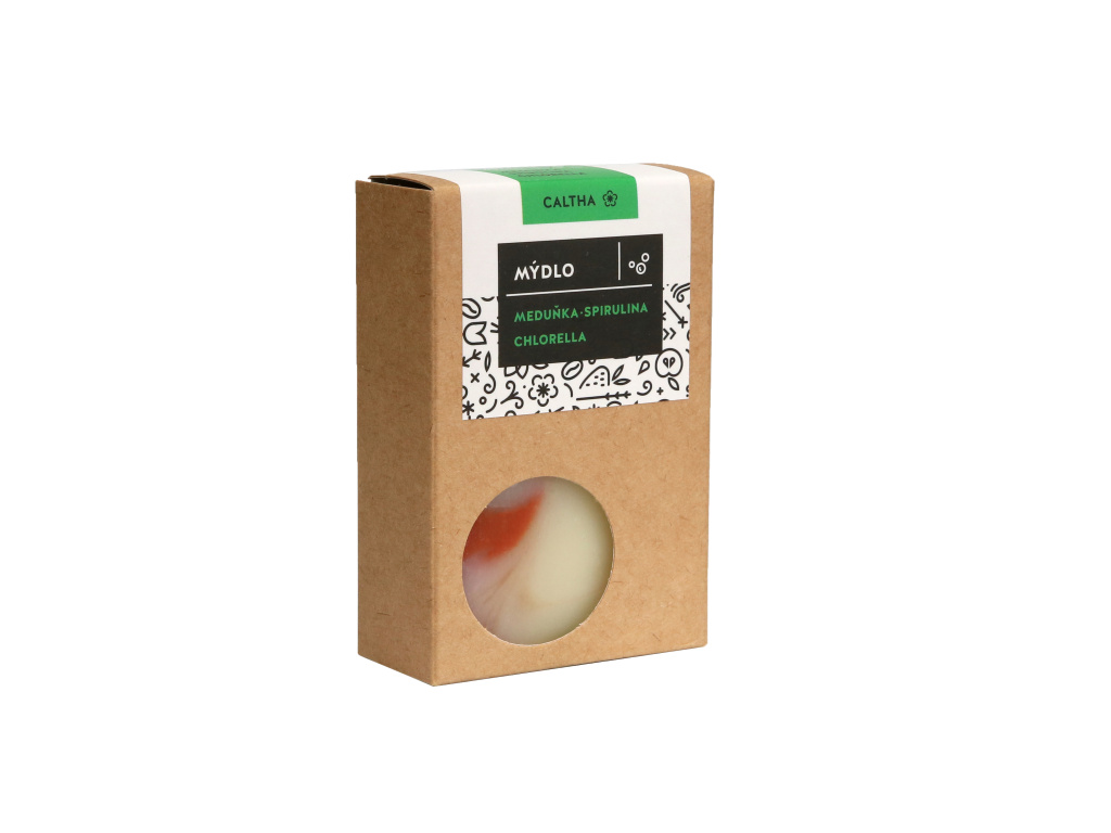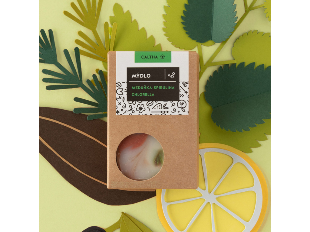 Mýdlo je obohaceno o sladkovodní řasy spirulinu a chlorellu, které jsou bohaté na chlorofyl, vitaminy a minerály. Tyto složky vyživují pleť, pomáhají ji chránit před nepříznivými vlivy prostředí a podporují léčbu kožních problémů, jako je akné nebo atopický ekzém. Listy a silice meduňky navíc zklidňují podráždění a působí relaxačně. Barevný vzhled mýdla je dosažen pouze přírodními bylinkami, řasami, hlinkami a minerálními oxidy. Kokosový olej udržuje pokožku pevnou a chráněnou, zatímco olivový olej jí dodává hebkost a vláčnost. Hydrataci podporuje i glycerin a včelí vosk, který vytváří jemný ochranný mikrofilm a působí proti akné.