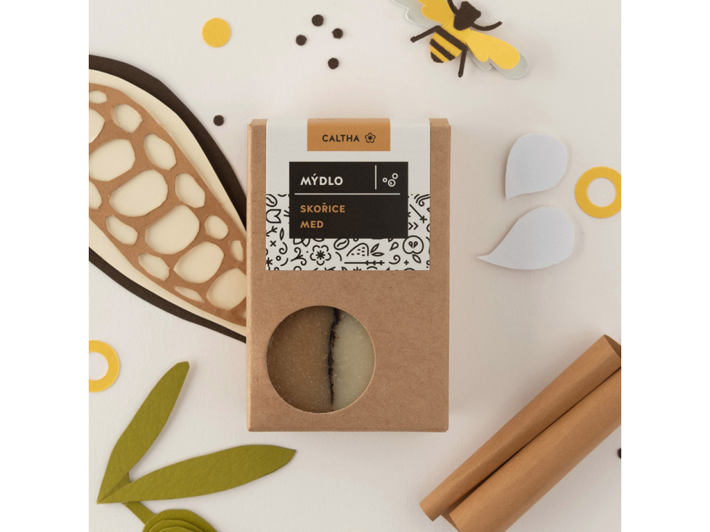 Výživný domácí med pokožku hydratuje, zjemňuje a podporuje její pružnost. Kakaové máslo dodává mýdlu hebkost a chrání buňky před volnými radikály, čímž zpomaluje jejich stárnutí. Skořice má prohřívací účinky, uvolňuje napětí a přispívá k pocitu relaxace, zatímco její jemné částečky působí jako přírodní peeling. Ochranný základ tvoří kokosový a olivový olej, které pokožku zvláčňují, zpevňují a dodávají jí přirozenou vláčnost.