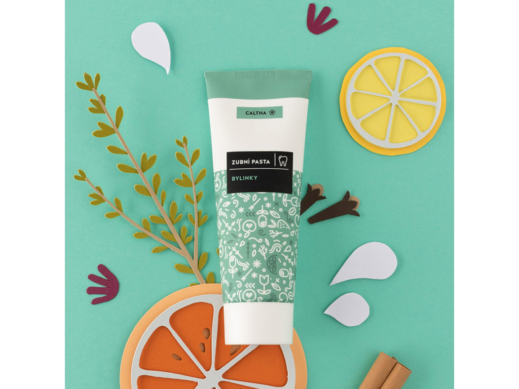 Vyvážený koktejl bylinných extraktů, míchaný s ohledy na chuť, vůni, ale i zdraví, podtrhne již tak výborné vlastnosti přírodní zubní pasty Caltha. Tento produkt získal certifikaci Certifikovaná přírodní kosmetika.