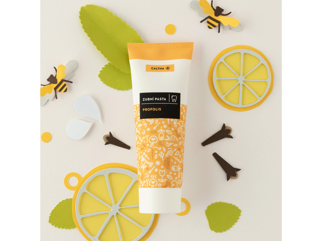 Zubní pasta PROPOLIS je doslova zabijákem bakteriálních povlaků. Včelí propolis potlačuje růst bakterií, zklidňuje podráždění a pomáhá při zánětlivých procesech. Spolu s mátou peprnou, mátou kadeřavou, hřebíčkem a citronem tvoří účinnou kombinaci, která chrání ústní dutinu a zároveň přináší svěží chuť. Přírodní složení bez zbytečných pěnidel či umělých parfemací je šetrné k dásním i sklovině. Křemelina a uhličitan vápenatý mechanicky odstraňují povlak a posilují zubní sklovinu, kokosový olej podporuje bělicí účinky bez rizika poškození. Xylitol se svou sladkou chutí paradoxně pomáhá v prevenci proti zubnímu kazu a chrání zuby i dásně.